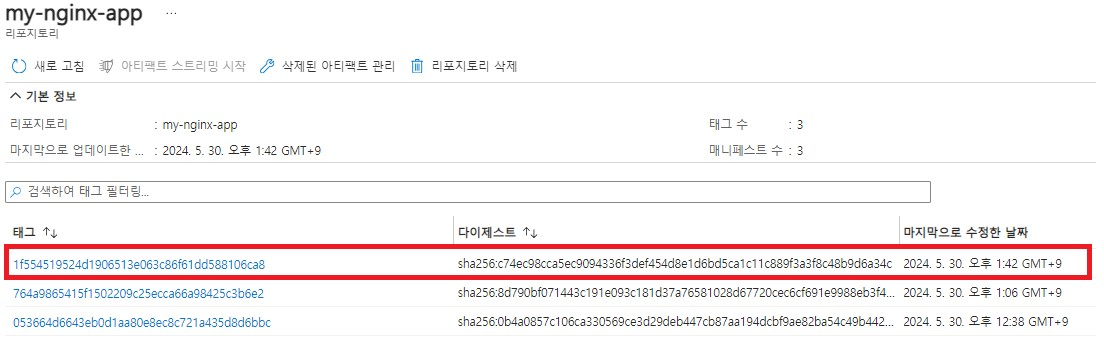 - Container Registry에 이미지가 들어갔는지 확인해줍니다.