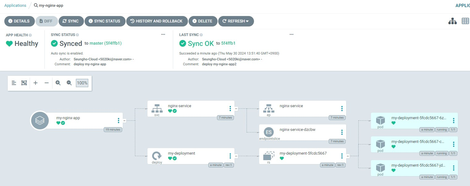 - 아래와 같이 “my-nginx-app” application이 생성된 것을 볼 수 있다.